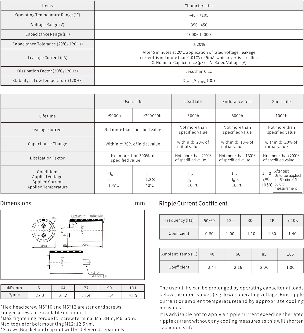 5000h at 105℃