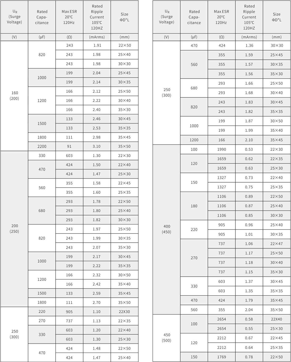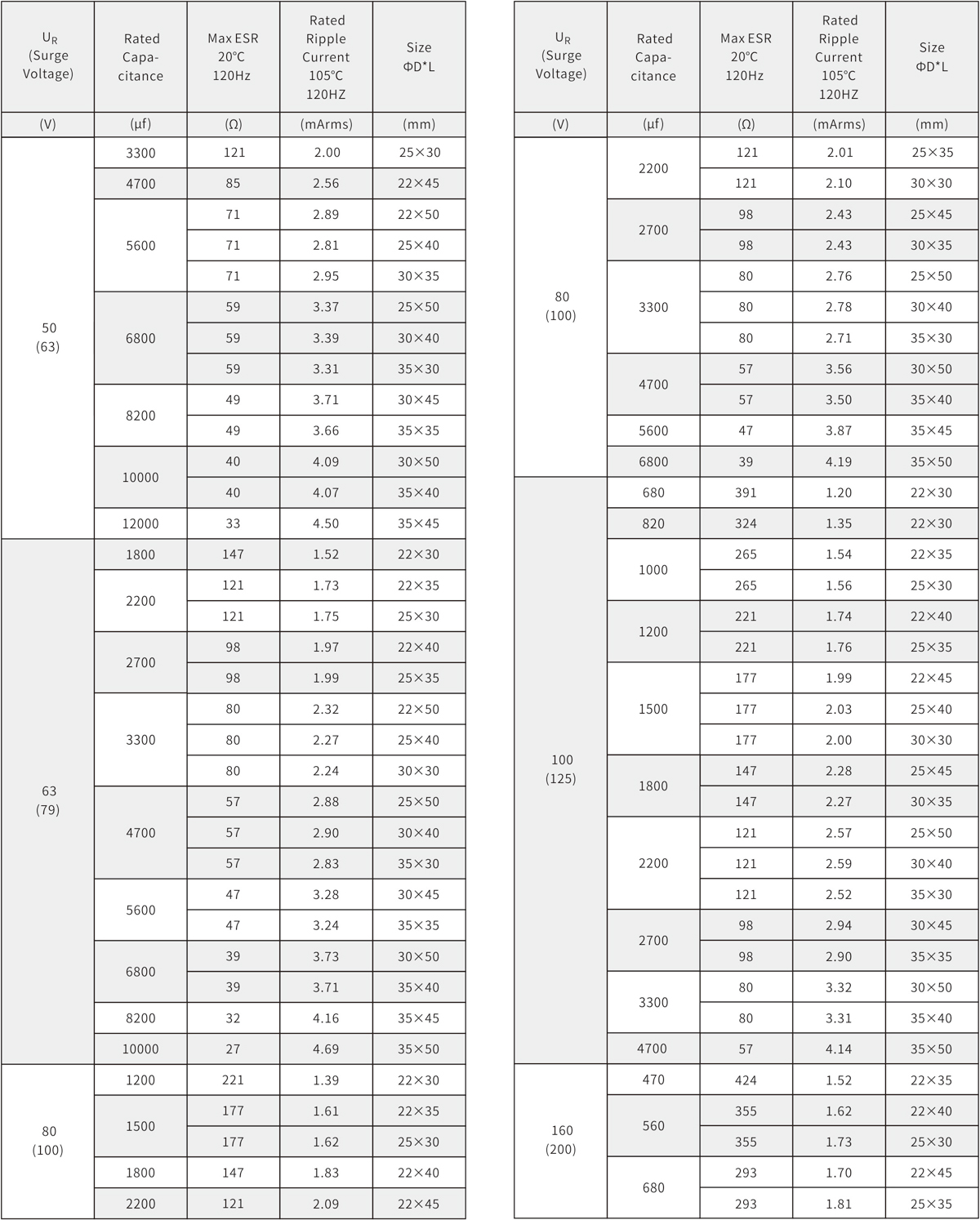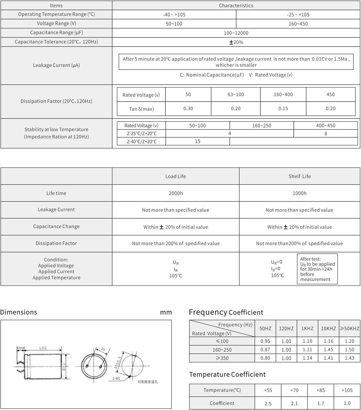 2000h at 105℃;Standard 105℃